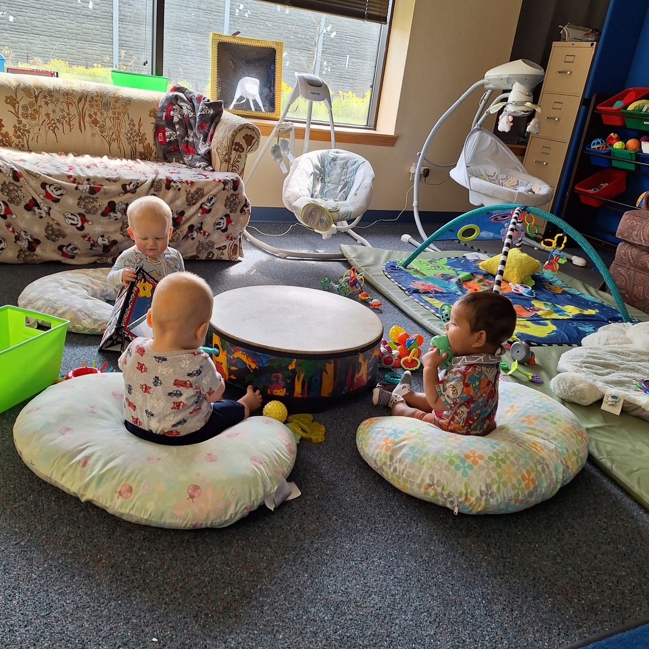 Our infant classroom is a safe, warm, and welcoming space designed for babies to explore and develop, featuring age-appropriate furniture, sensory toys, and designated areas for napping, feeding, and diaper changes. Key elements include ample natural light, soft flooring, and child-sized materials that encourage movement and independence, as well as staff interactions that promote bonding through activities like tummy time, cuddles, and conversation.