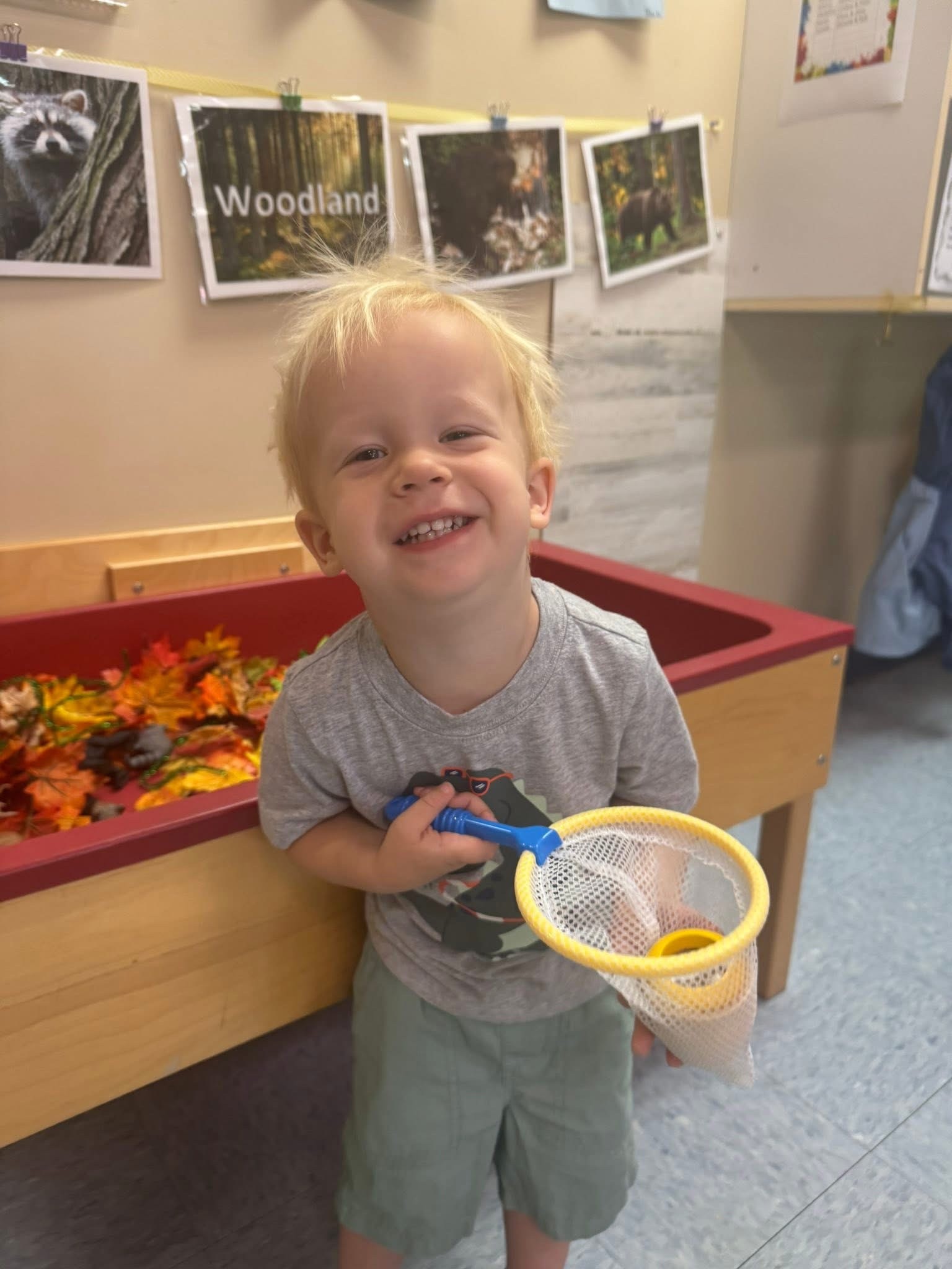 Our two-year-old classroom is a stimulating, safe, and child-centered environment with low shelves of child-sized furniture and accessible materials for independent exploration and play. It features distinct areas for different activities like quiet reading, active play, art, and sensory exploration, with a strong emphasis on routines, social-emotional learning, and hands-on experiences to build independence, focus, and a love of learning. Teachers guide learning through play, encourage communication, and support each child’s development through gentle, consistent interactions.